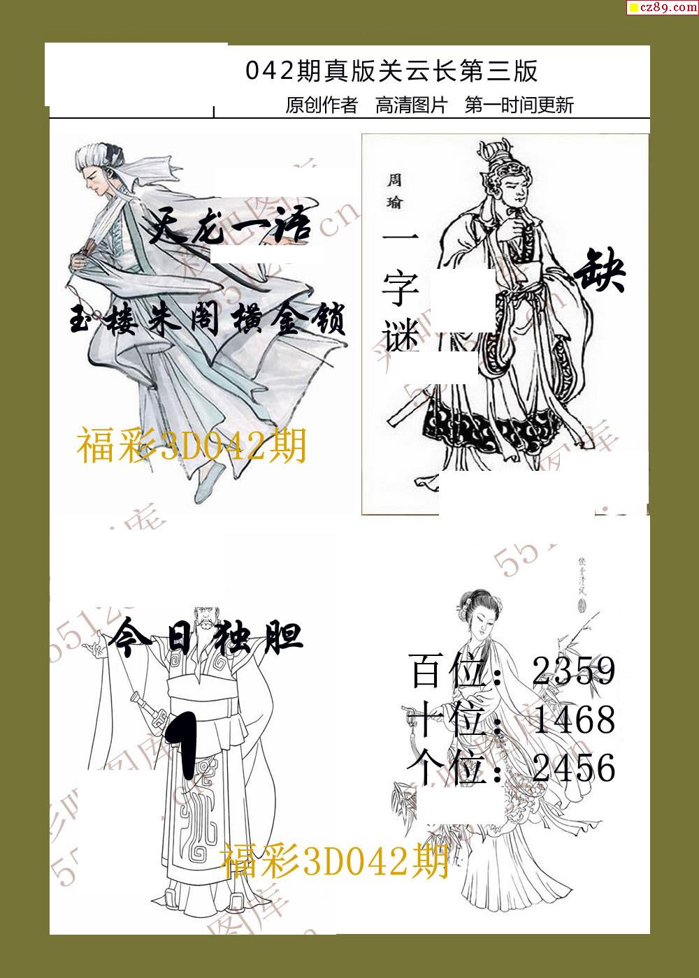 20年042期福彩3d真版关云长图谜