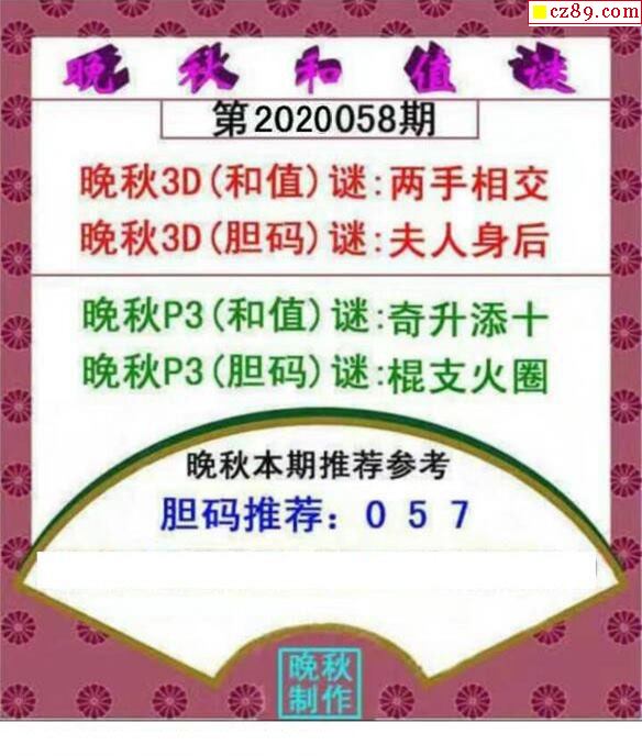 晚秋和值谜2020058期3d图谜