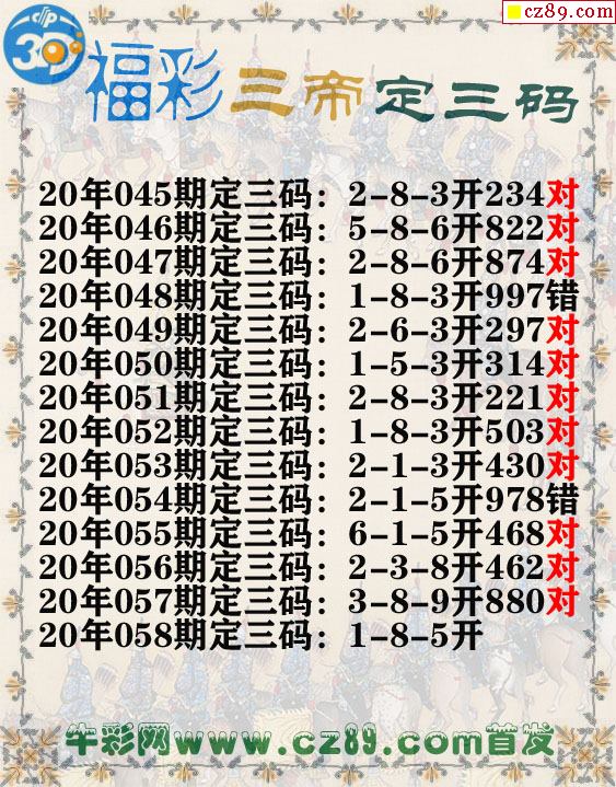 福彩三帝定三码058期3d图谜