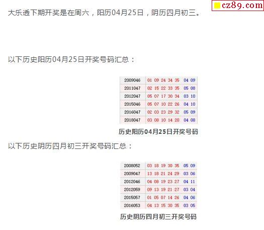 历史上的今天大乐透04月25日开奖号码汇总