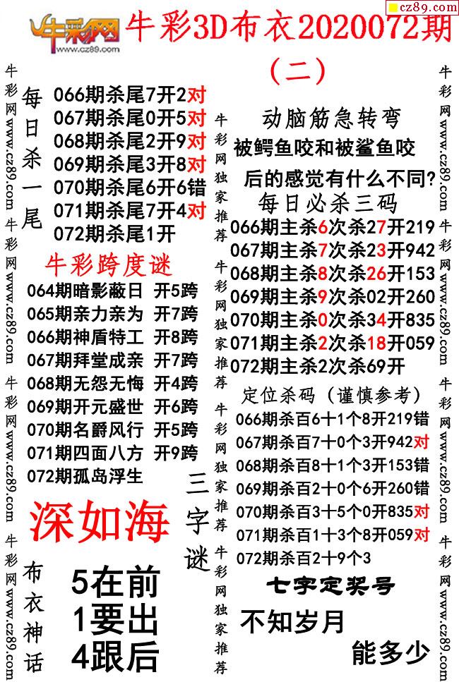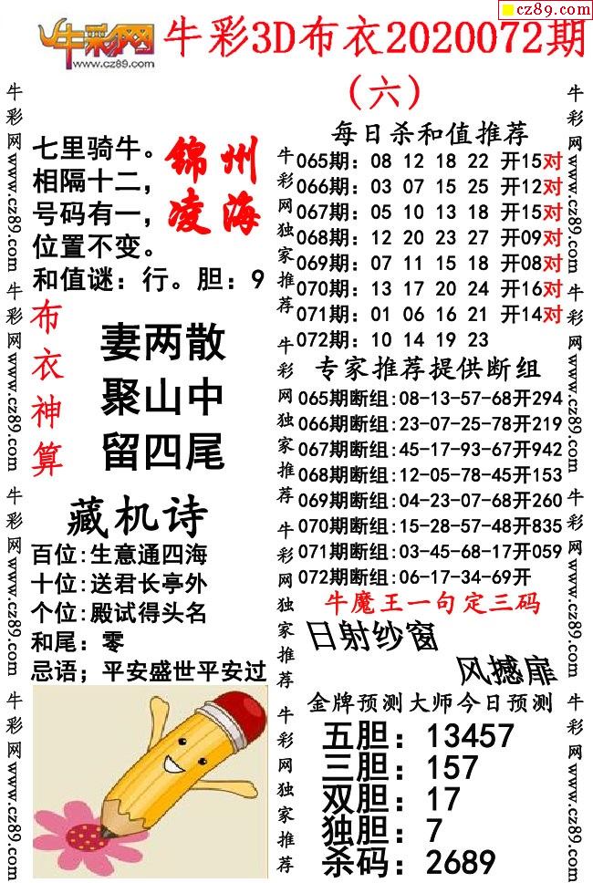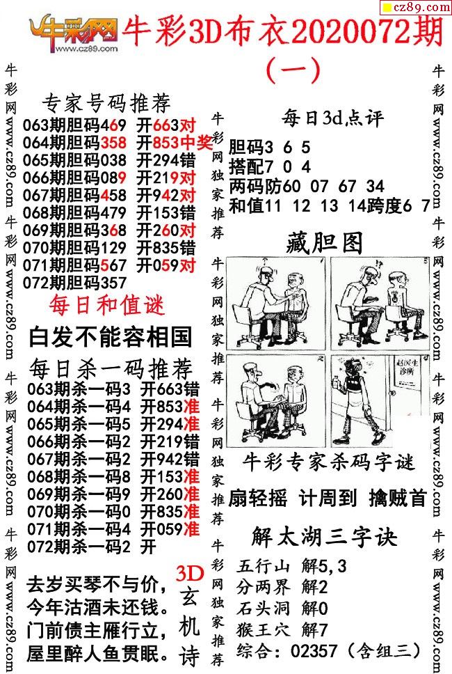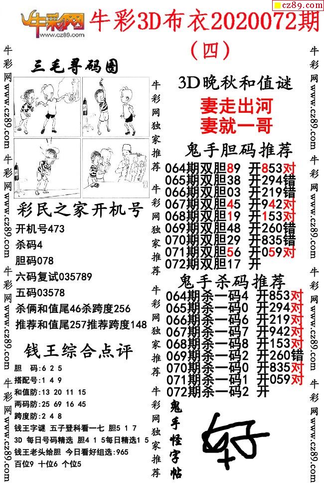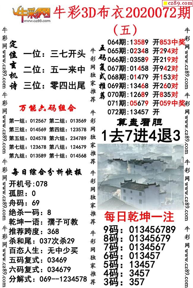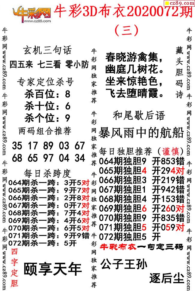 牛彩版布衣精选合辑072期3d图谜(独家推荐)