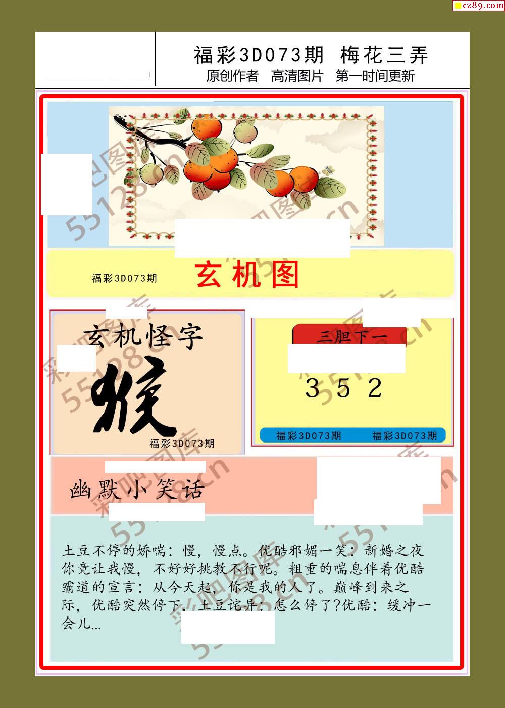 梅花三弄20年073期福彩3d图谜