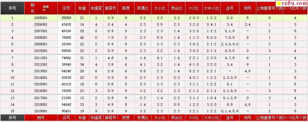 第081期体彩P5历史同期对比