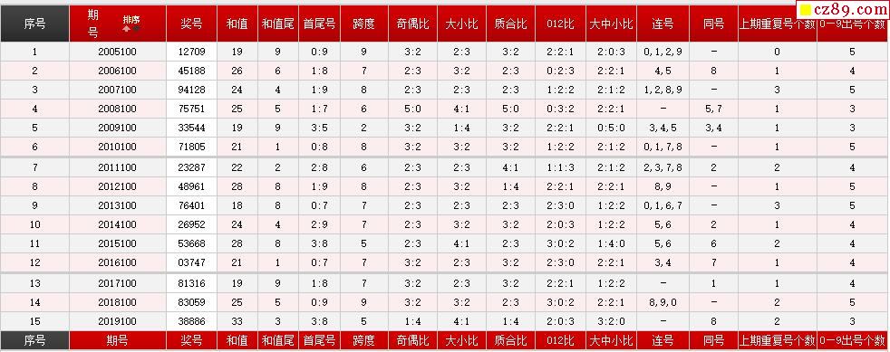 第100期体彩P5历史同期对比