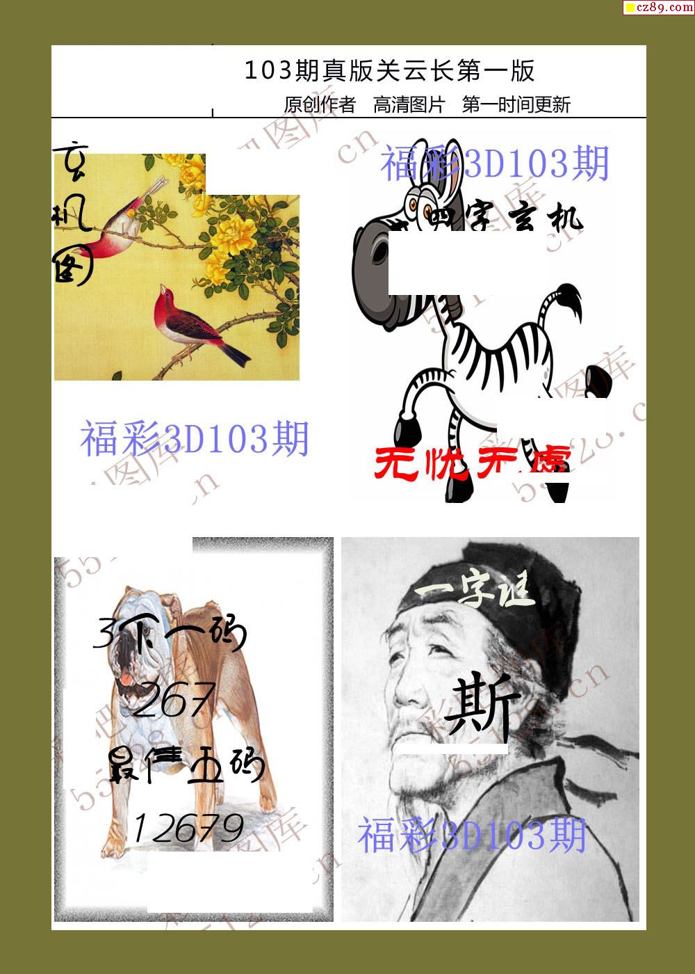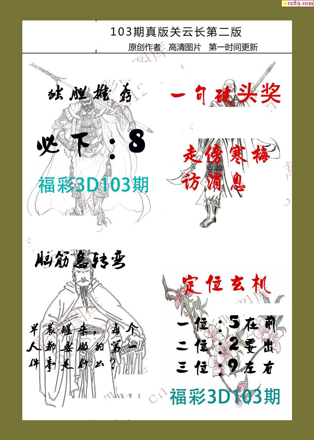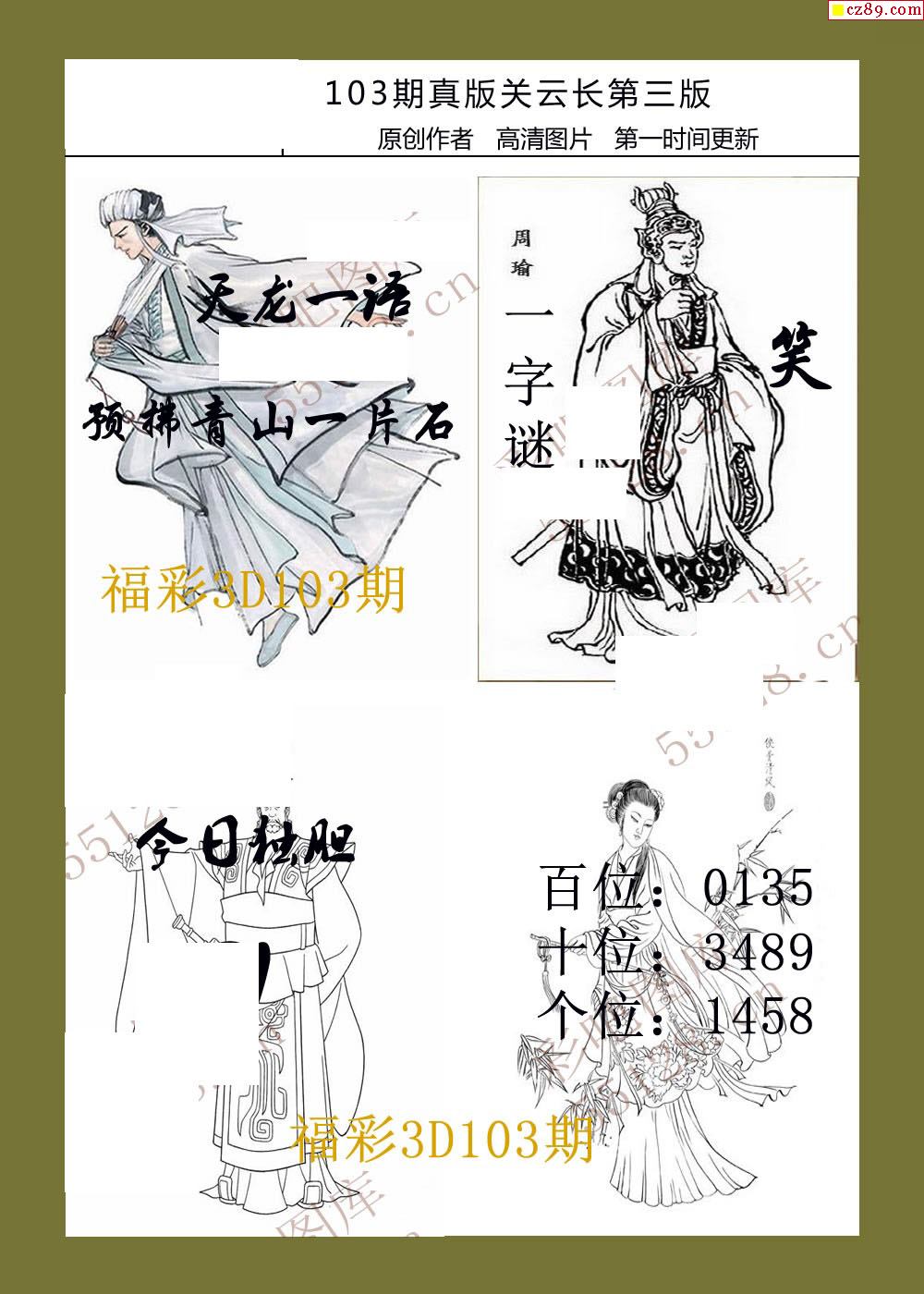 20年103期福彩3d真版关云长图谜