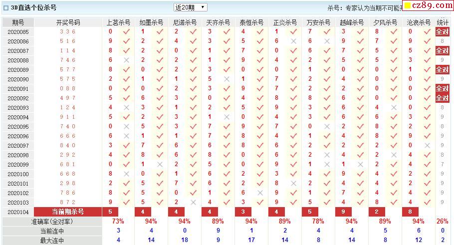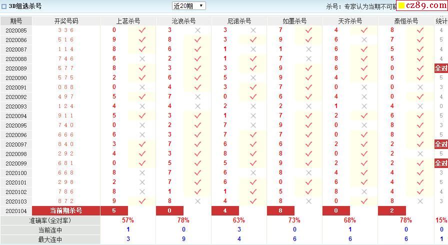 20年104期澳客专家福彩3D杀号定码推荐