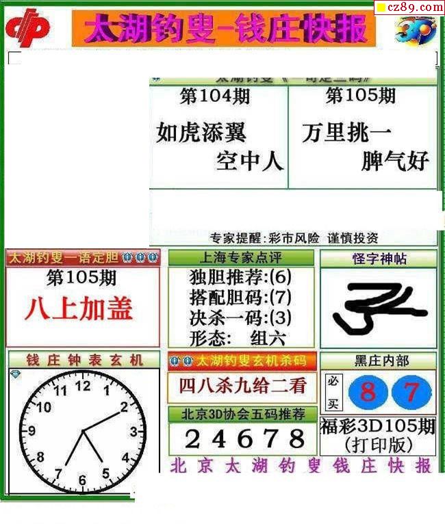 钱庄快报2020105期3d图谜