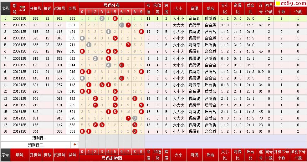第125期福彩3D历史同期对比