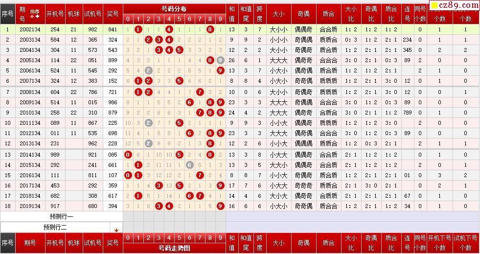 第134期福彩3D历史同期对比
