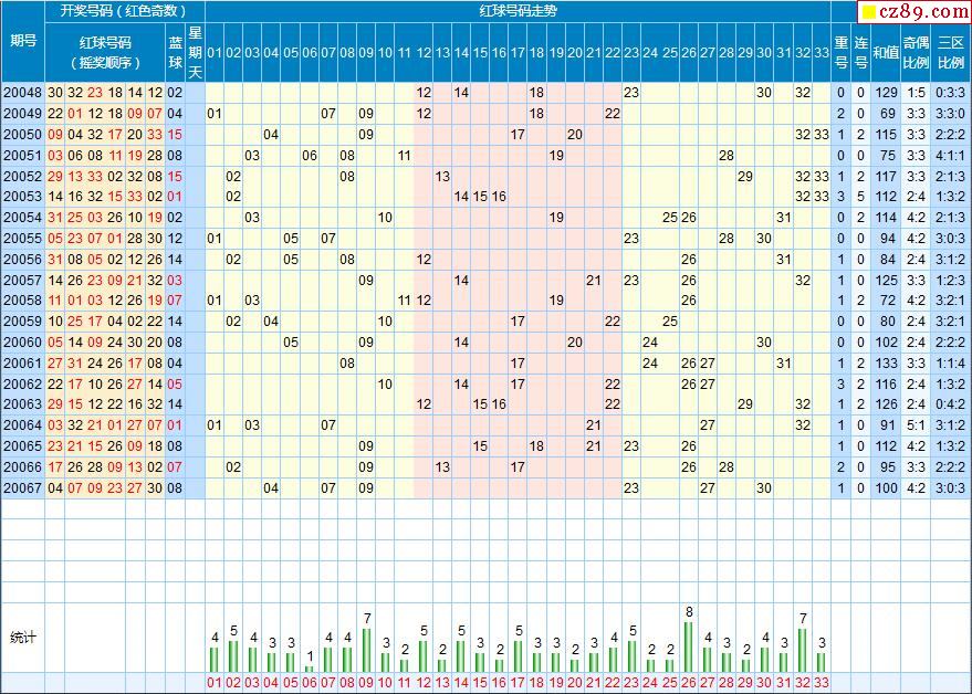 068期福彩双色球近期走势图分析