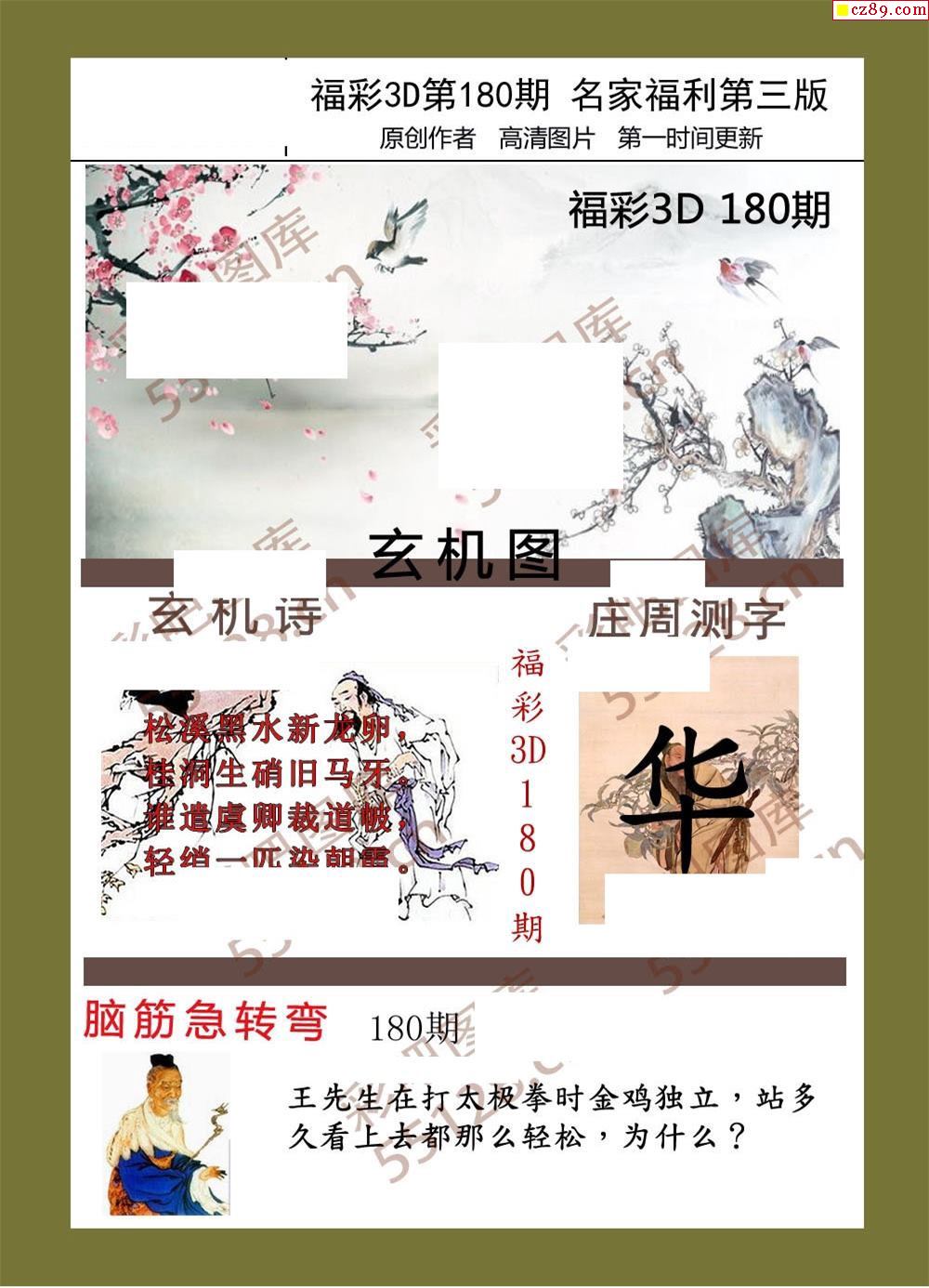 福彩名家福利彩票3d20年180期图谜
