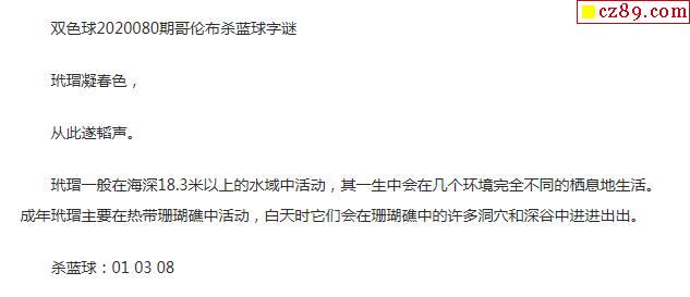 20年福彩双色球第080期 哥伦布一句杀蓝球字谜