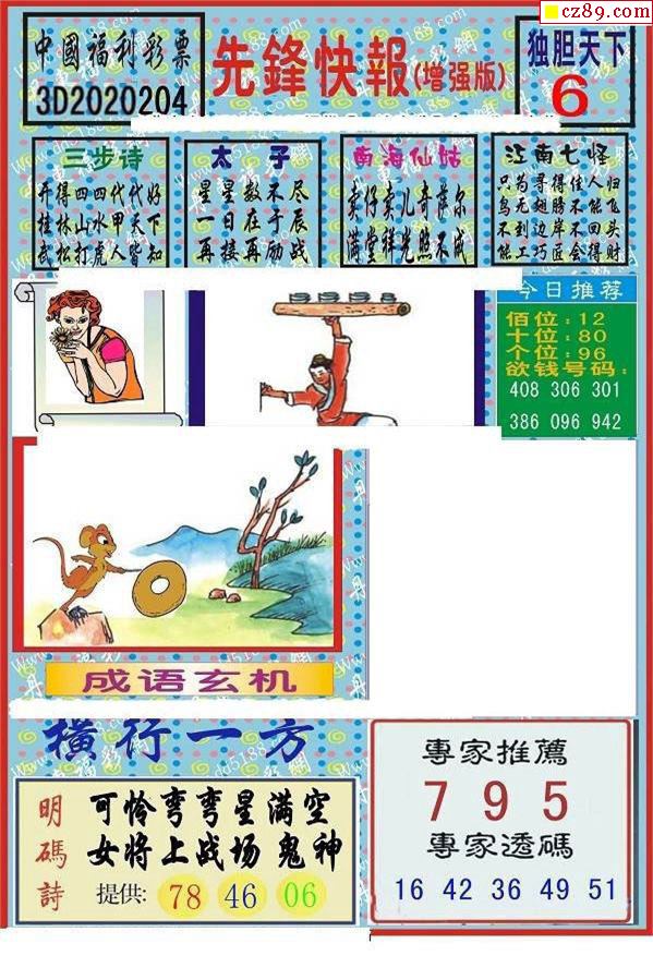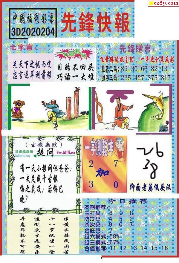 先锋快报2020204期3d图谜