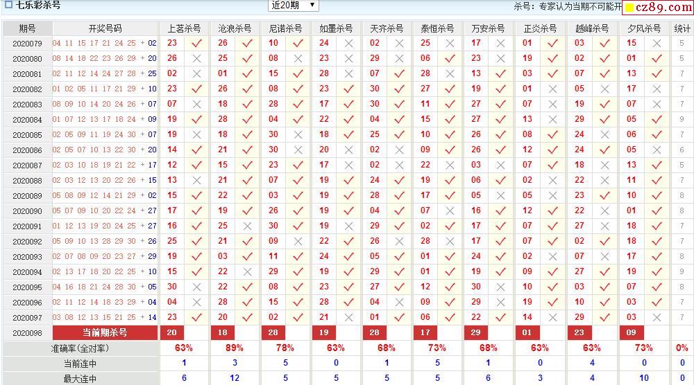 七乐彩098期 澳客专家杀号码预测推荐