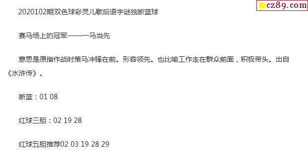 彩灵儿20年102期双色球蓝球歇后语字谜