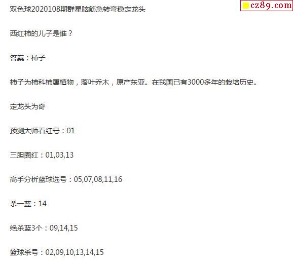 20年福彩双色球第108期 群星脑筋急转弯定龙头字谜
