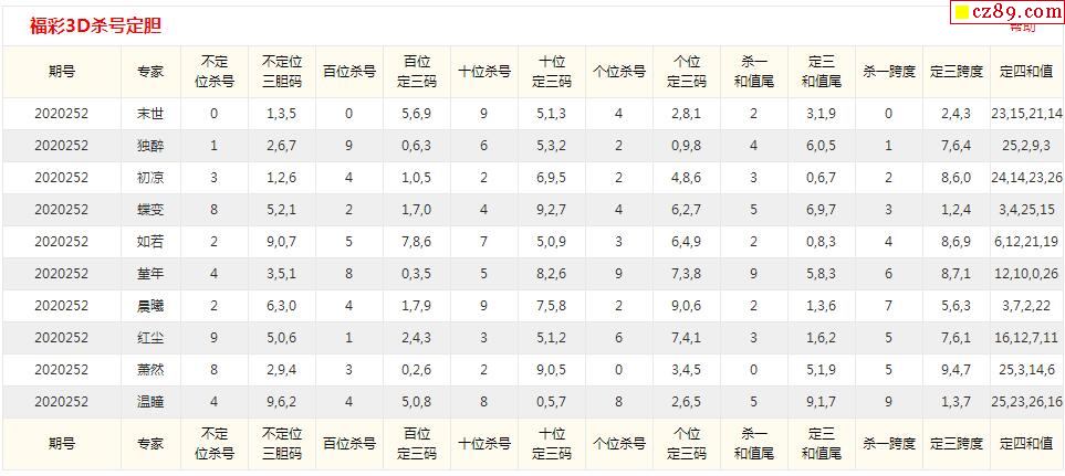 20年252期彩宝贝专家福彩3D杀号定码图表