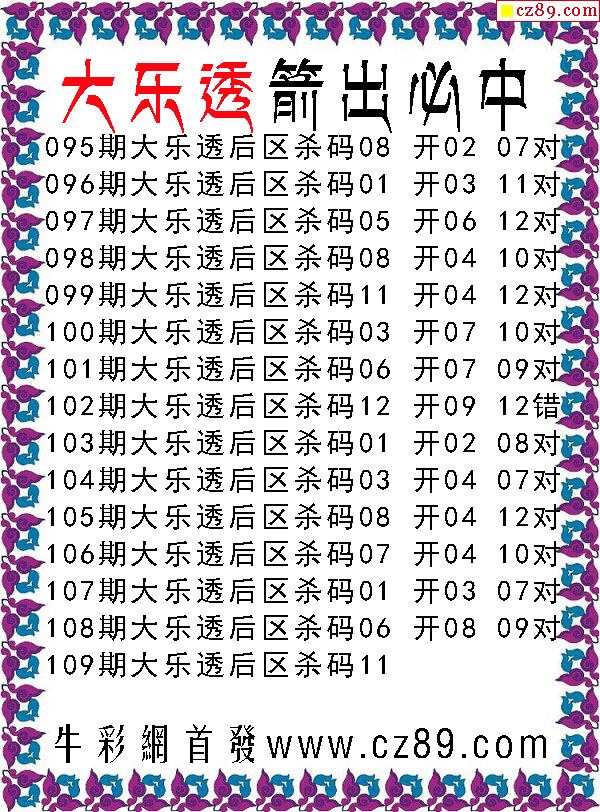 大乐透2020109期箭出必中后区杀号图谜