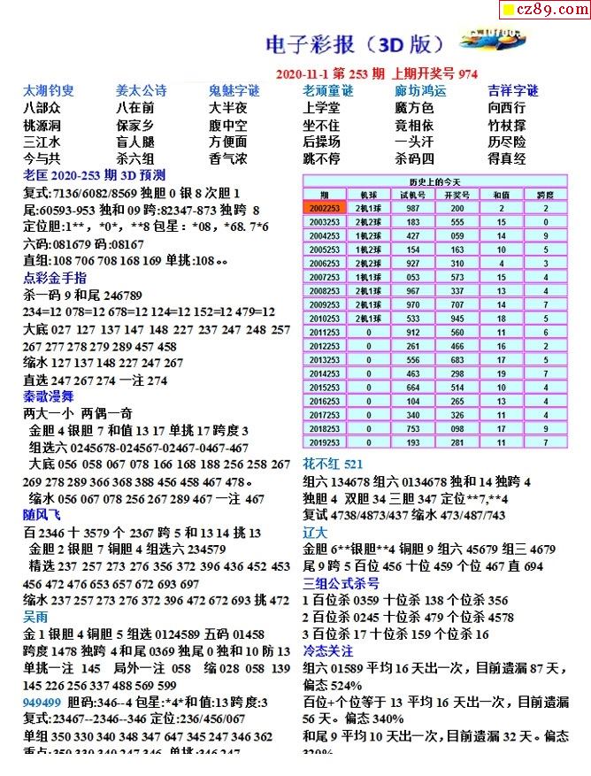 3d字迷总汇2020年253期牛彩版福彩3D今日字谜汇总