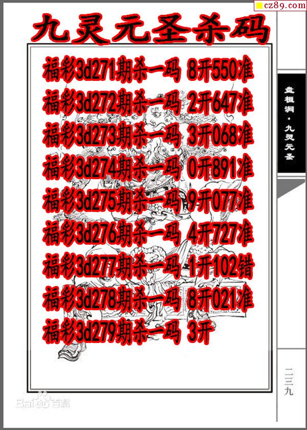 九灵元圣杀码2020279期3d图谜(原创)