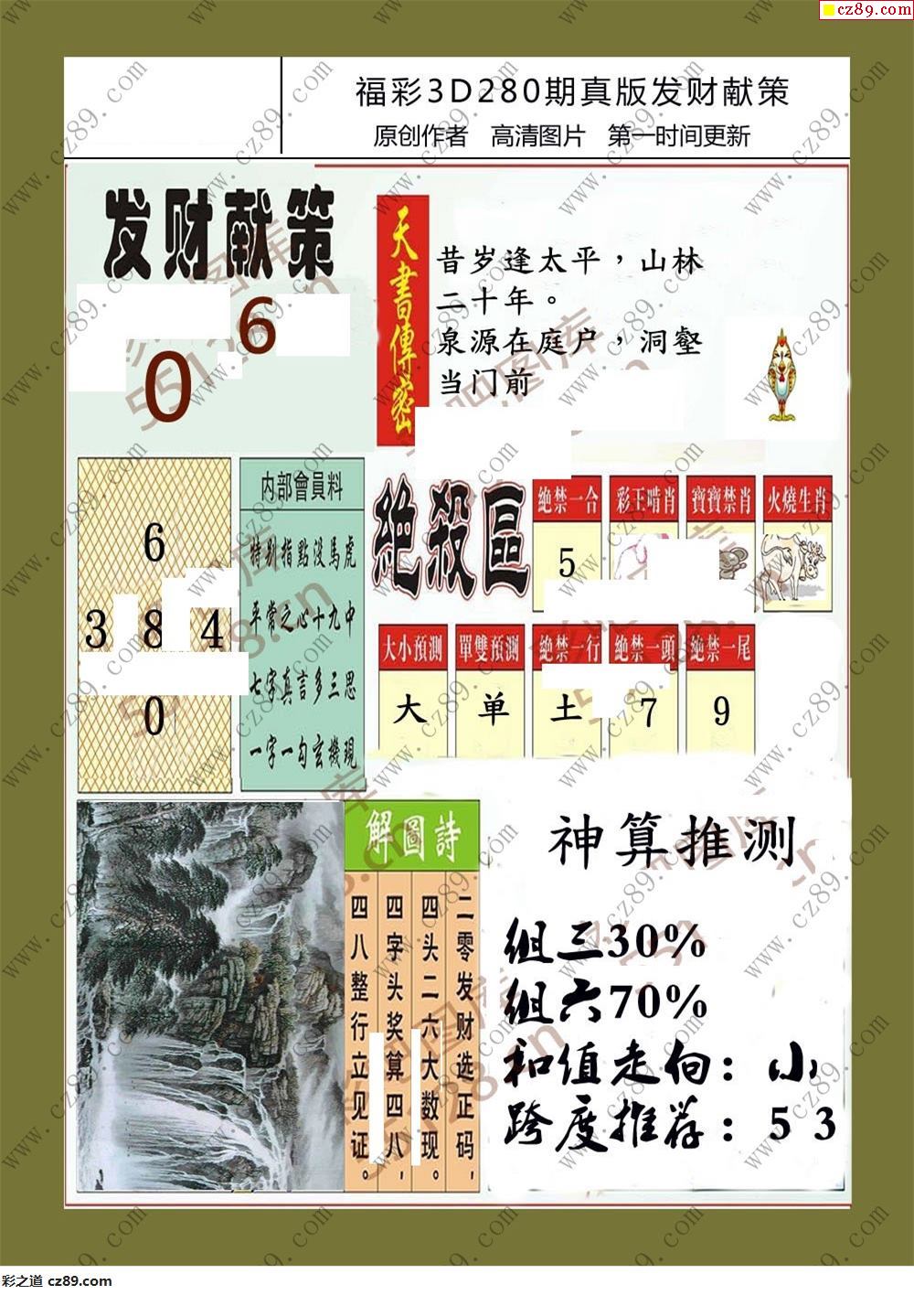25年体彩P3342期 千山犹绿藏机胆码字谜