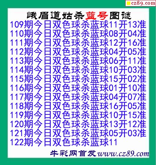 峨眉道姑杀蓝号122期双色球图谜