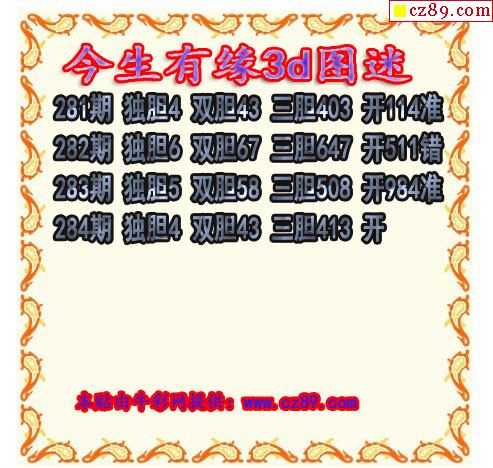 今生有缘三胆2020284期3d图谜(原创)