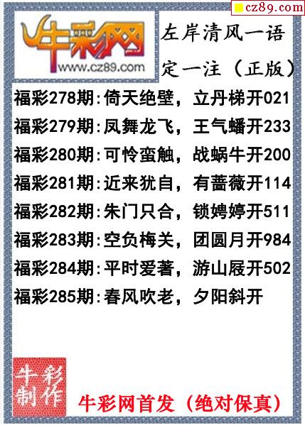 26年033期牛彩网福彩3D字谜汇总大全【晚间版】