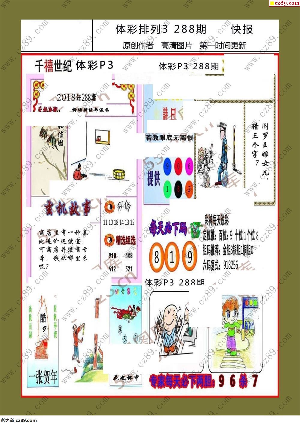 香岛快报288期体彩p3图谜
