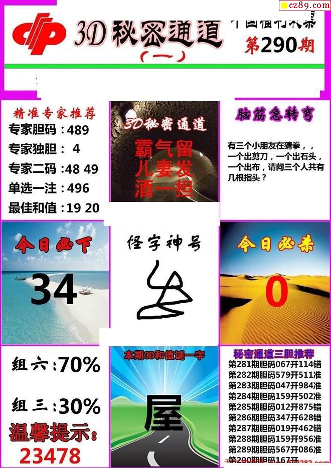 秘密通道2022290期3d图谜