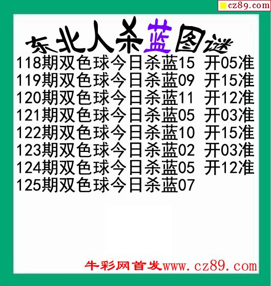 东北人杀蓝球125期双色球图谜