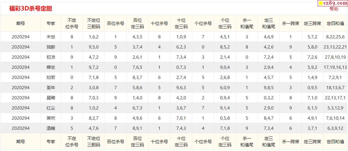 20年294期彩宝贝专家福彩3D杀号定码图表