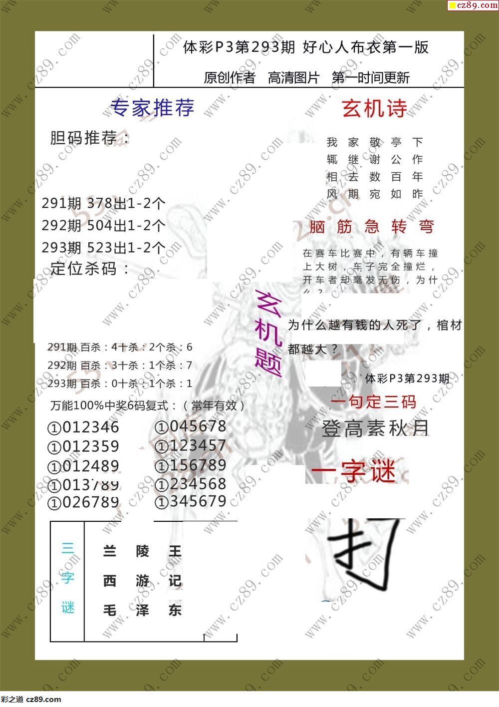 牛彩P3布衣25年337期AB版图谜(精华版)