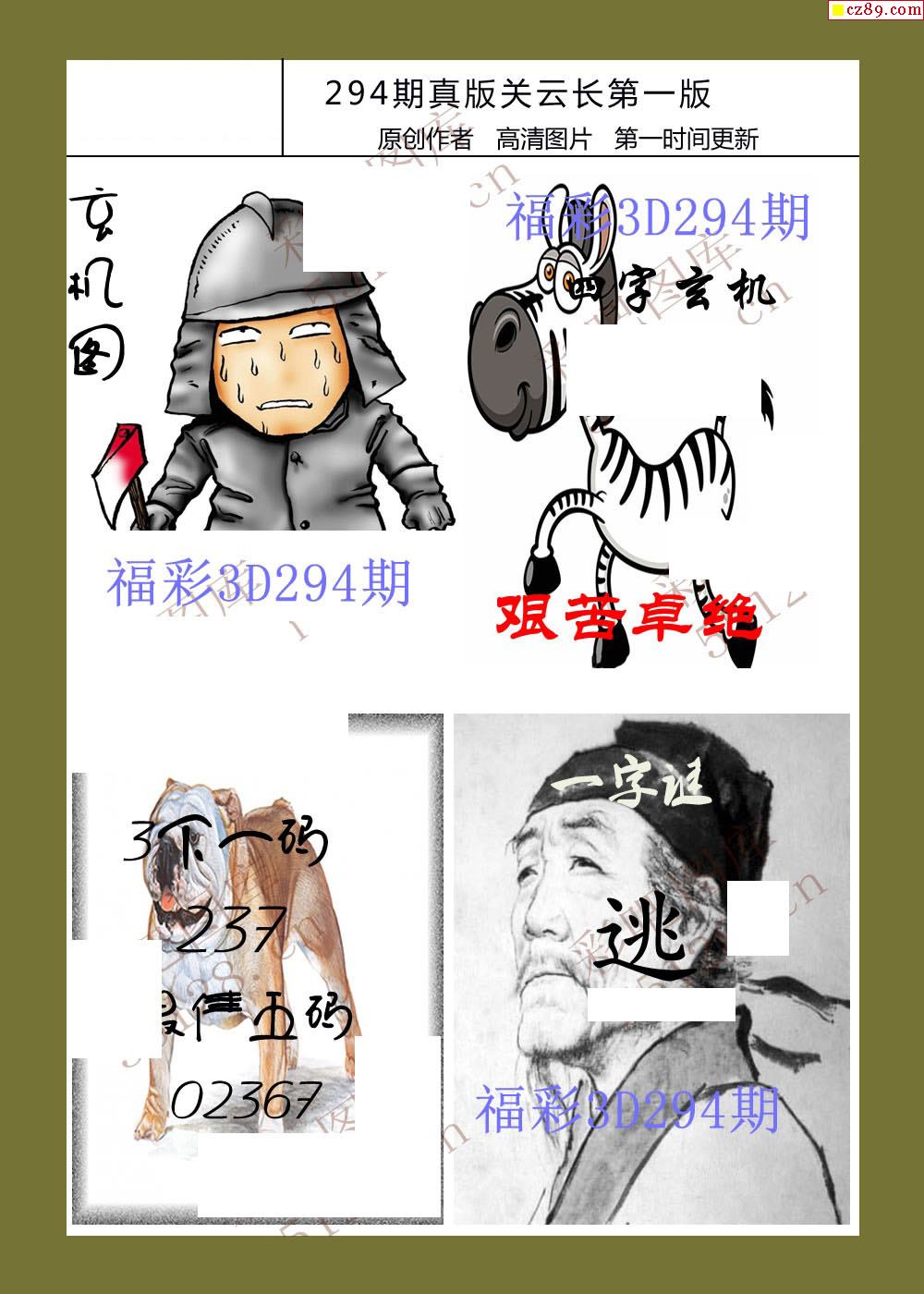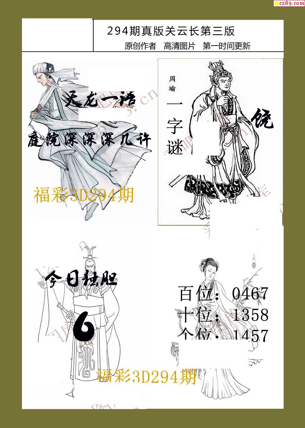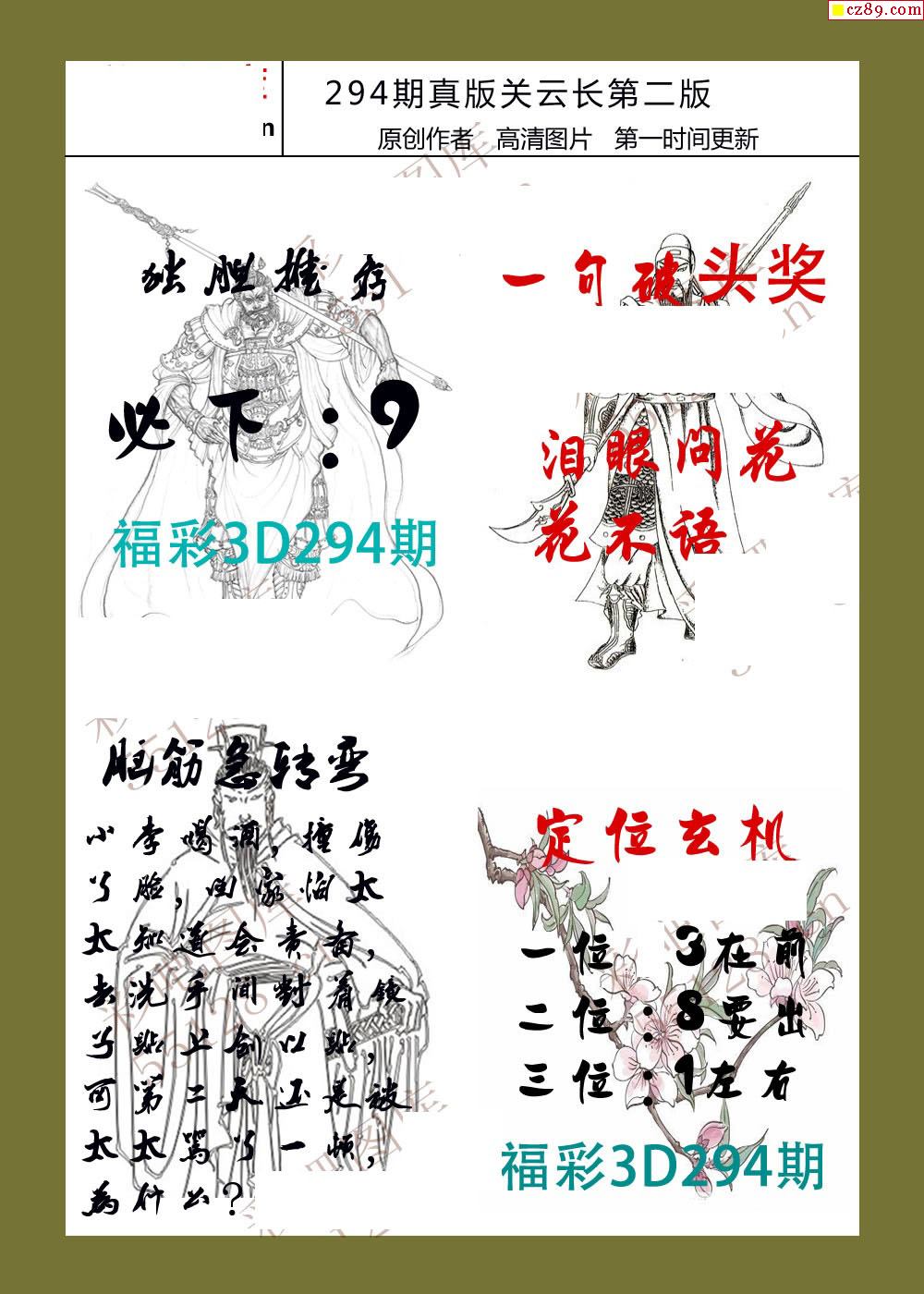 20年294期福彩3d真版关云长图谜
