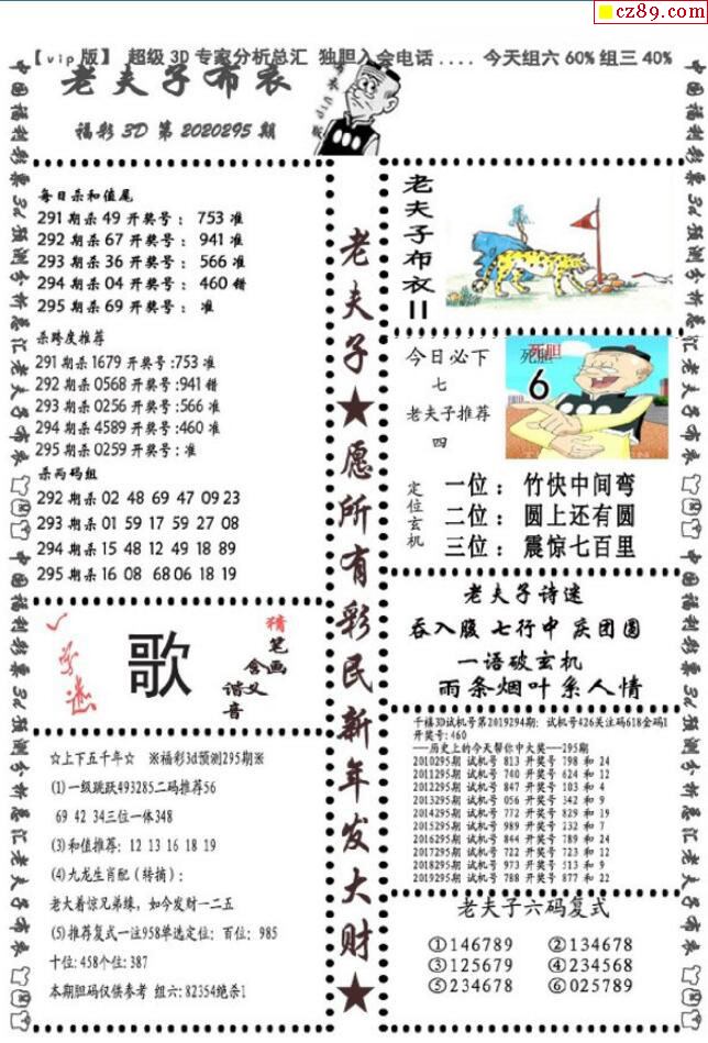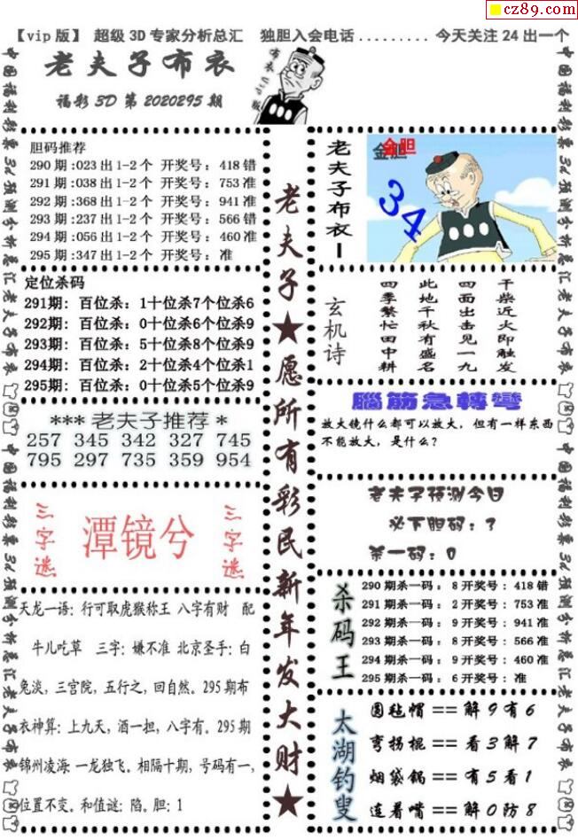 老夫子布衣2020295期3d图谜