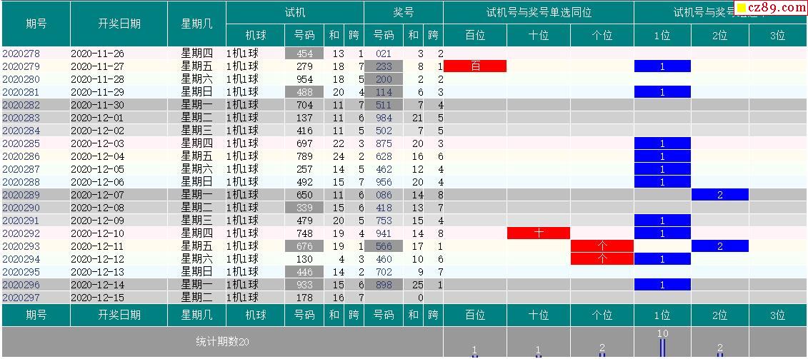 千禧2020年第297期3d试机号:[178]试机号对应码:[033]