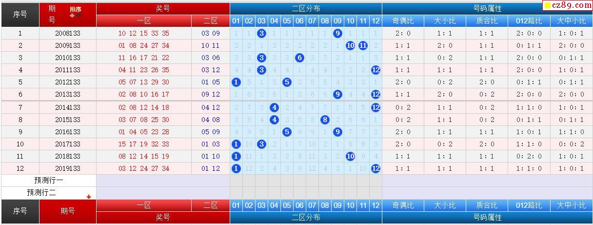 133期双色球历史同期对比图表