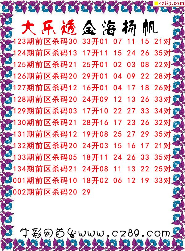 大乐透150期牛彩特邀专家前区后区杀号定胆图表