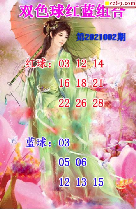 仕女红蓝组合21年002期双色球图谜