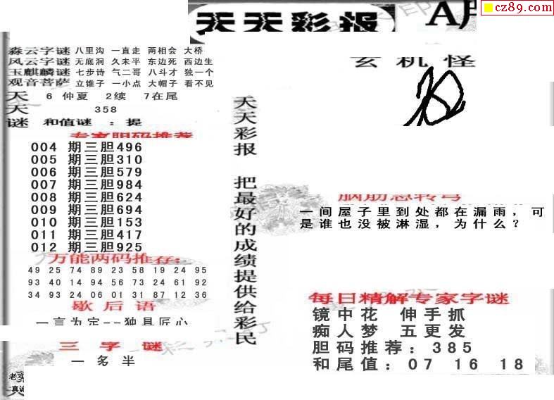 天天彩报21年012期3d画谜专区