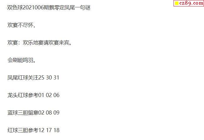 2021年006期双色球 幽冉分析本期红球凤尾两码
