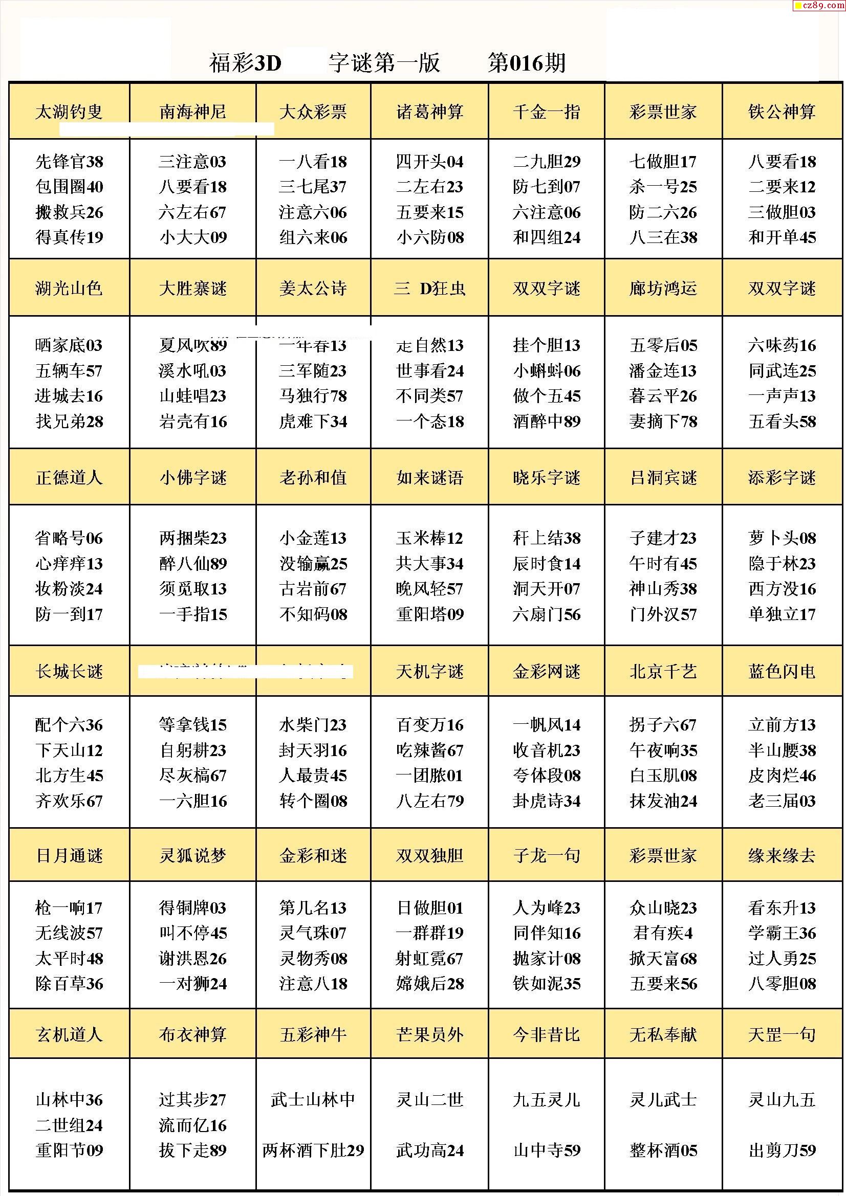 3d字迷总汇2021年016期牛彩版福彩3D今日字谜汇总
