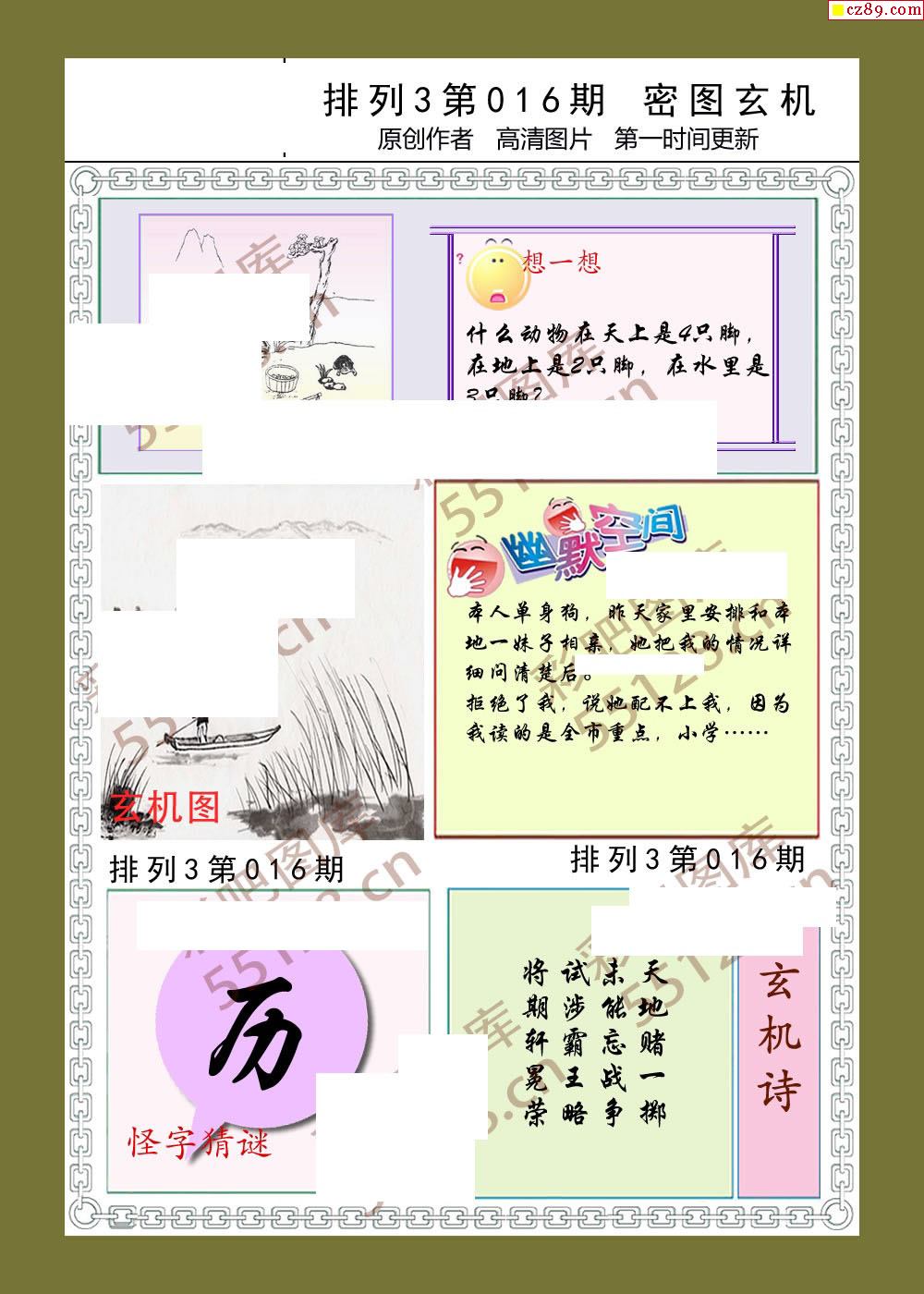 密图玄机016期体彩p3图谜