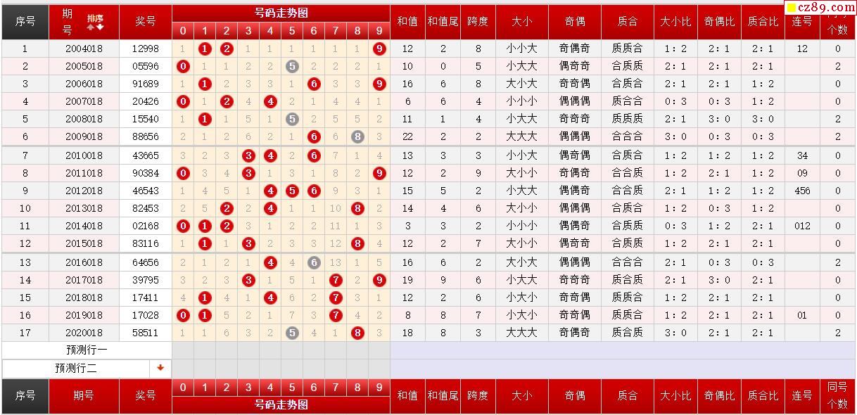 第018期体彩P3历史同期对比