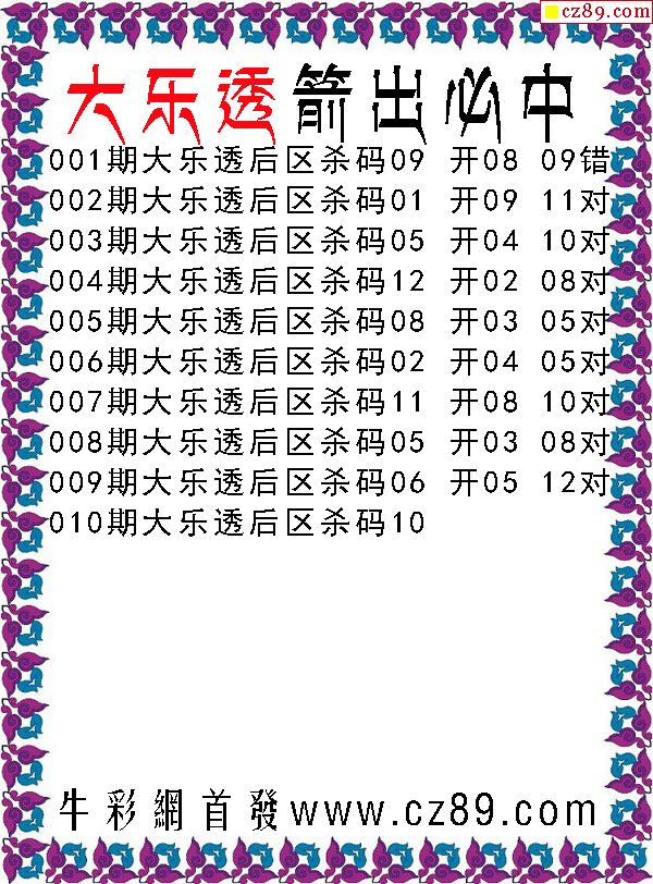 大乐透2021010期箭出必中后区杀号图谜