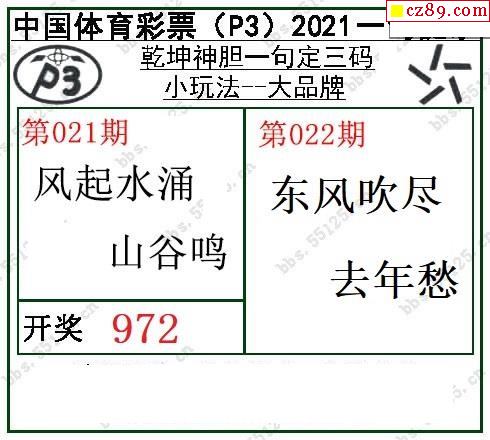 乾坤一句定三码21年022期P3图谜