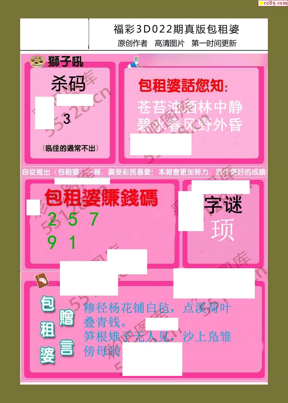 21年022期福彩包租婆3d彩报