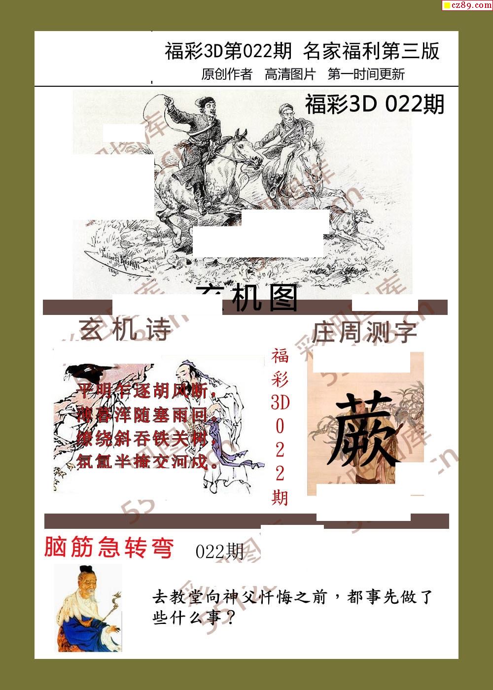 福彩名家福利彩票3d21年022期图谜