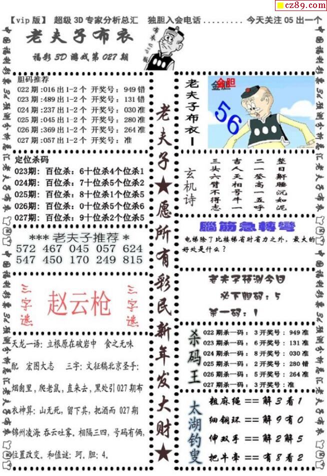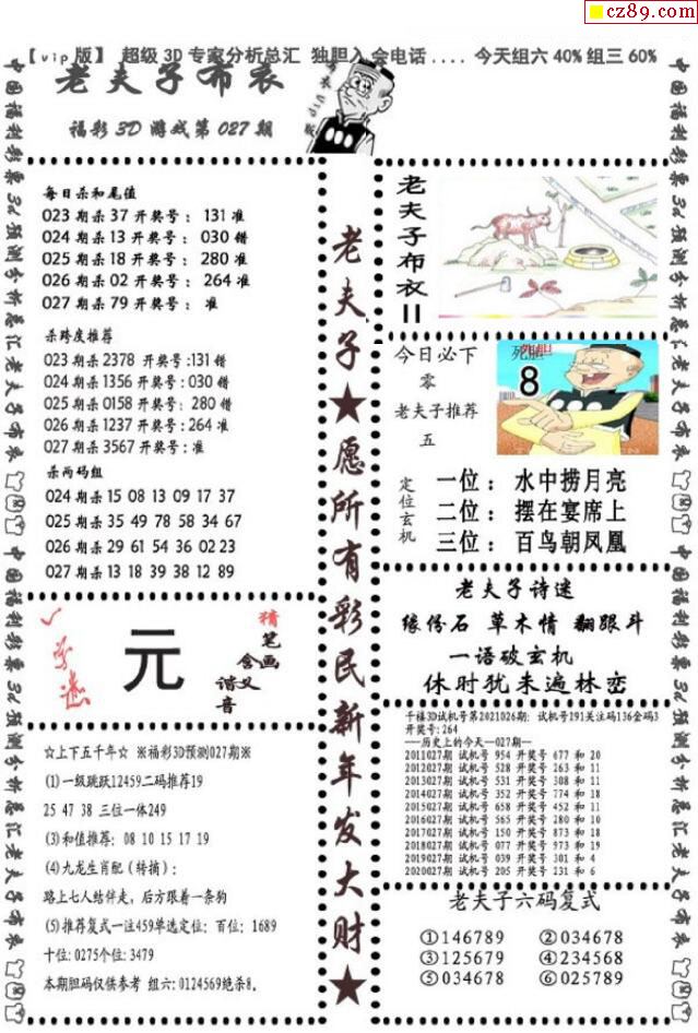 老夫子布衣2021027期3d图谜
