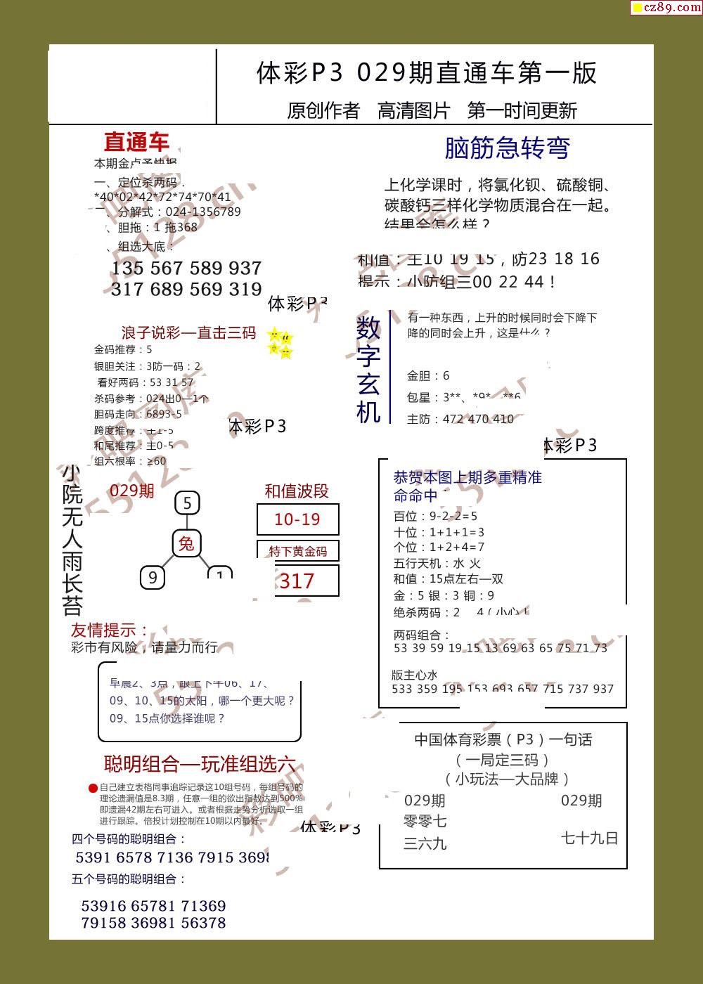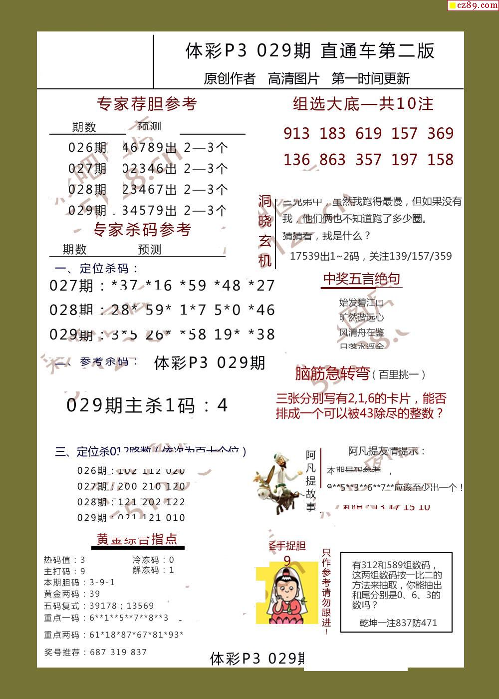 直通车AB版029期体彩p3图谜